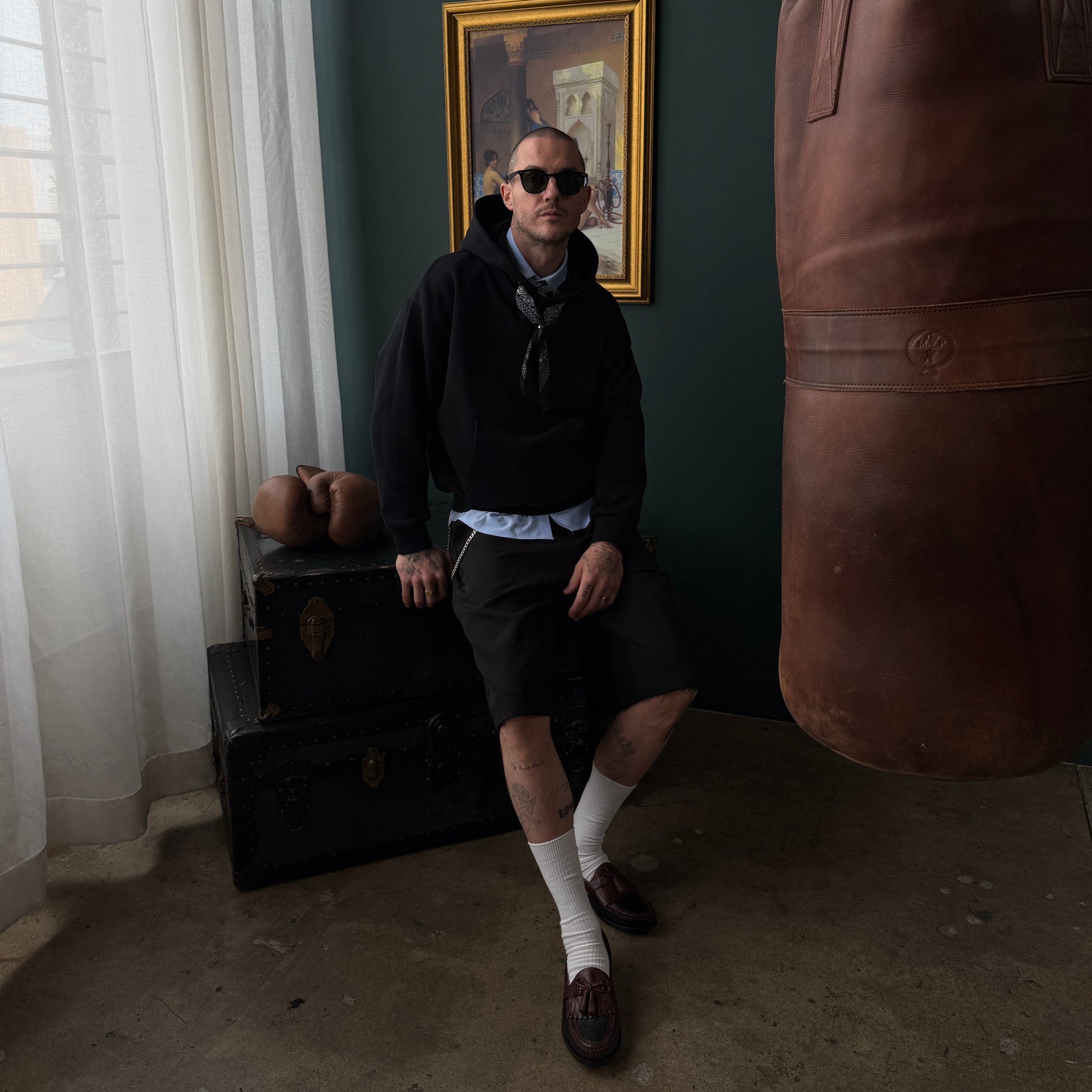 Every hoodie includes our ICÔNE (noir) Signature Bandana, made from 100% cotton, and is paired with our Basic 14k Gold Plated Ring to keep it in place.